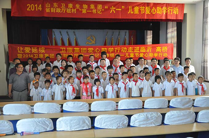 2014年5月30日,值此六一兒童節(jié)來(lái)臨之際,“讓愛(ài)延續(xù)”衛(wèi)康生物集團(tuán)愛(ài)心助學(xué)行動(dòng)走進(jìn)山東沂水。